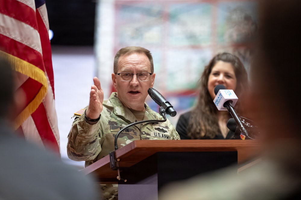 Maj. Gen. Francis J. Evon Jr., the adjutant general of the Connecticut National Guard, speaks during the unveiling of a statue honoring Sgt. Stubby, a World War I canine hero, at the Museum of Connecticut History in Hartford, Connecticut, April 20, 2026. The ceremony marked the 100th anniversary of Stubby's death and recognized Connecticut's first military working dog, widely considered one of the most decorated dogs in U.S. military history. (U.S. Army National Guard photo by Spc. Emmanuel Gibson)